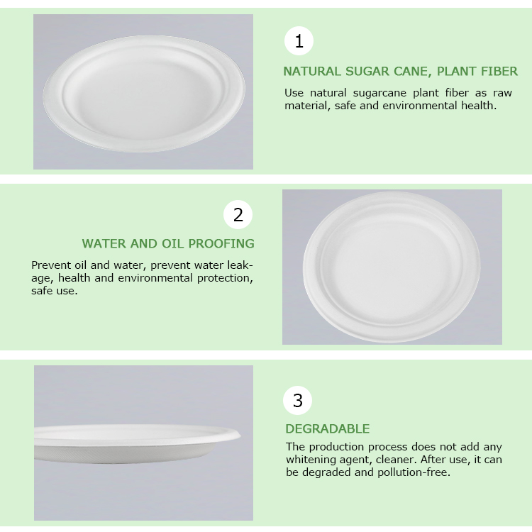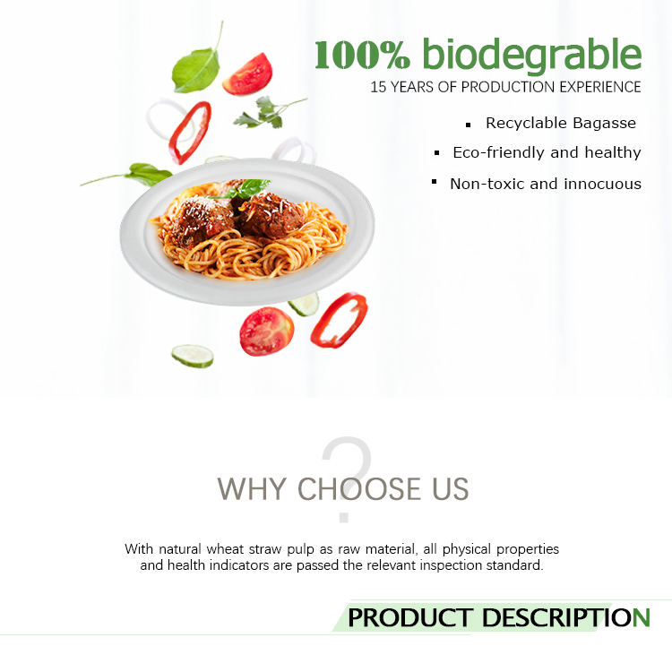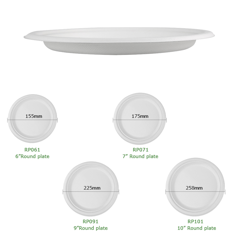 This kind of bio-degradable round plate are eco-friendly food packaging with hot resistance of 120℃, which is microwavable.
