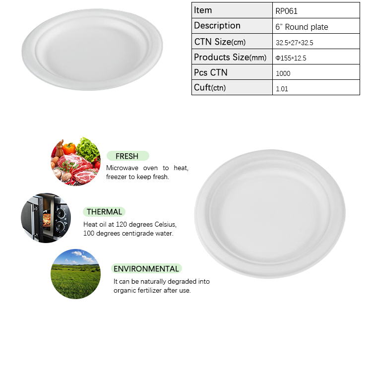 | RP061 | Round Plate | Ø155×15mm | Natural Pulp | 1000 |